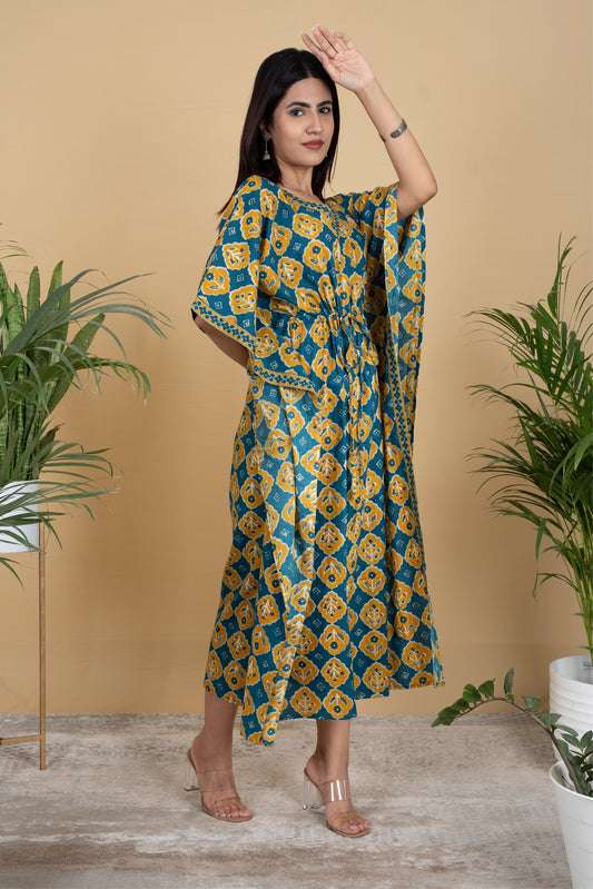 Sold outTEAL MUSTARD BAGRU KAFTAN LONG