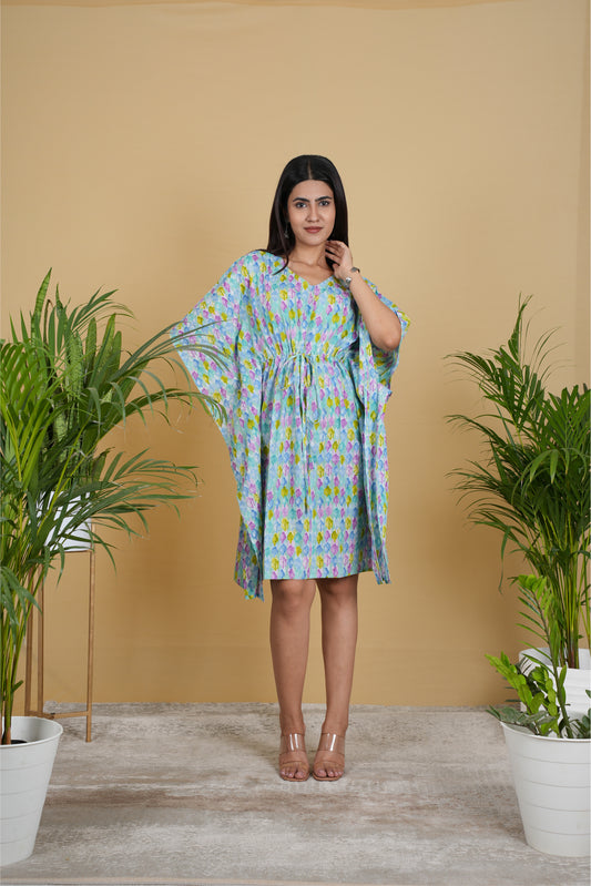 LIGHT BLUE FLORAL BLOB KAFTAN SHORT