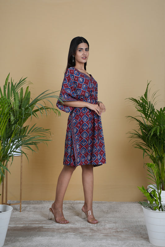 OFF WHITE & BLUE MUGHAL BLOCK PRINT KAFTAN SHORT
