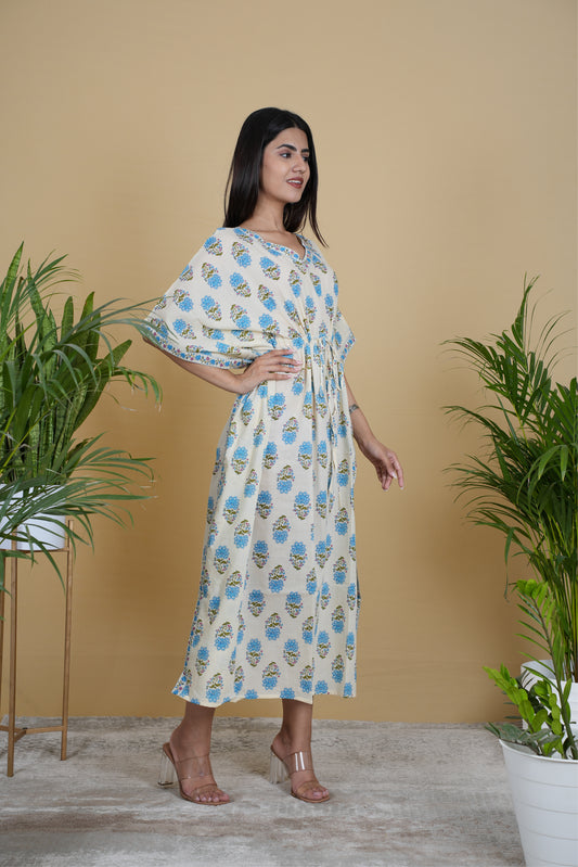 LIGHT BLUE FLORAL BLOB KAFTAN LONG