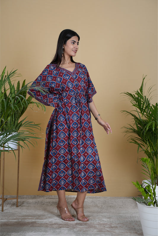 OFF WHITE & BLUE MUGHAL BLOCK PRINT KAFTAN LONG